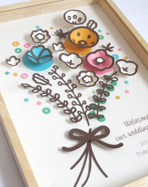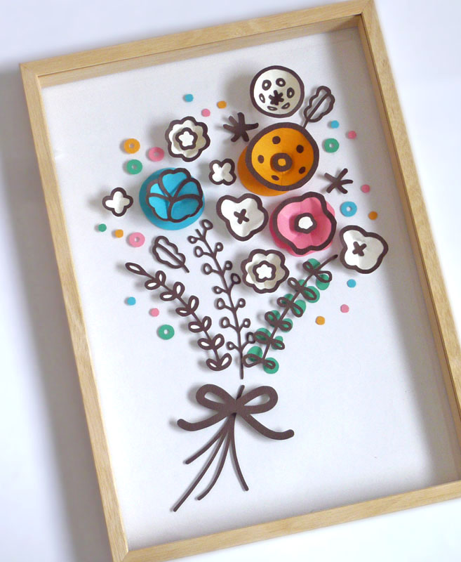 紙を剥がして壁に飾ると、額の中で花束が浮いているように見えて、なかなかおもしろいです。